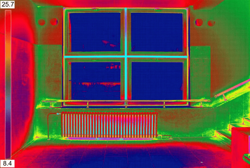 – La conductivité thermique plus élevée des matériaux utilisés dans certains éléments du bâtiment (par exemple, le verre a une conductivité thermique plus élevée que la brique ou le béton, les fenêtres sont donc plus sujettes aux ponts thermiques).