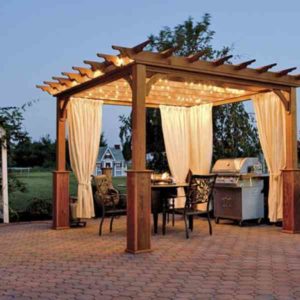 • Il est possible d’installer un éclairage avec des lanternes, des spots, des Leds accroché en hauteur ou intégrés à la structure de la pergola.